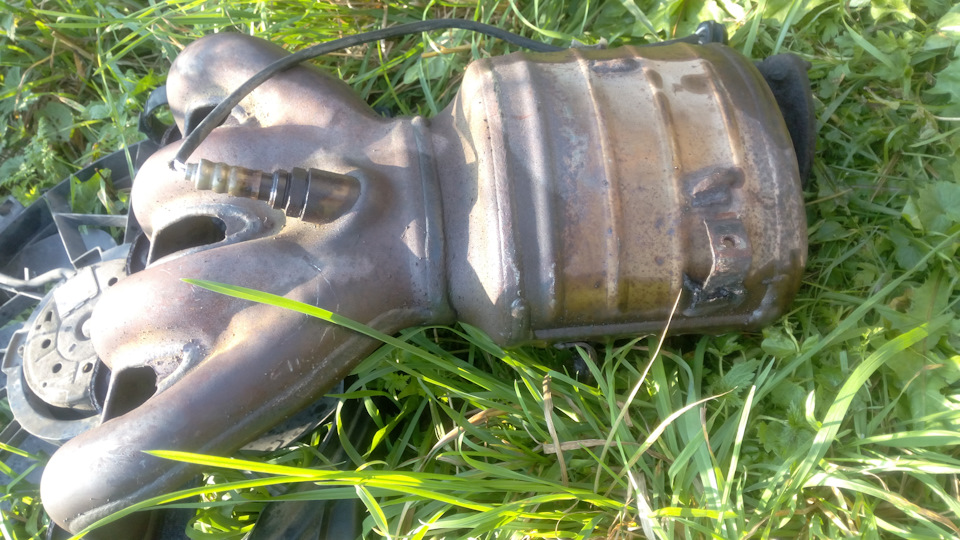 Описывать процесс сборки/разборки смысла не вижу, отчетов написано целые тома, тем более, что там всё предельно просто. Я не пользовался отчетами, а руководствовался приниципом «снимай всё, что мешает». Компрессор кондиционера не откручивал, и потому доооооолго бодался с экраном катализатора. Ну, как и все, впрочем. Сначала даже вентилятор не снял, но он все же не дал мне достать катализатор, пришлось убирать.