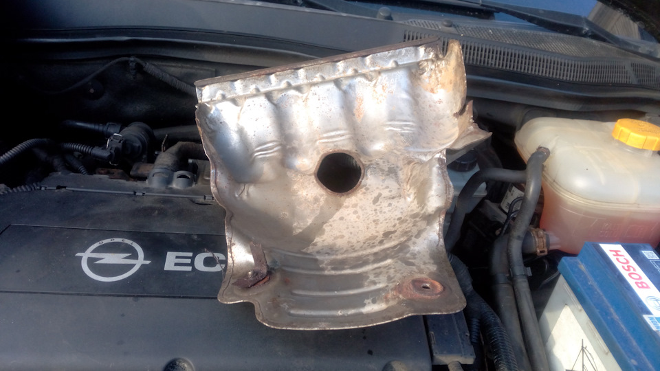 Как можно увидеть, обломан крепеж экрана к катализатору. Причем зимой его подваривали, но хватило ненадолго. Наверняка, не у меня одного такая проблема, как решить? И на катализаторе обломки: