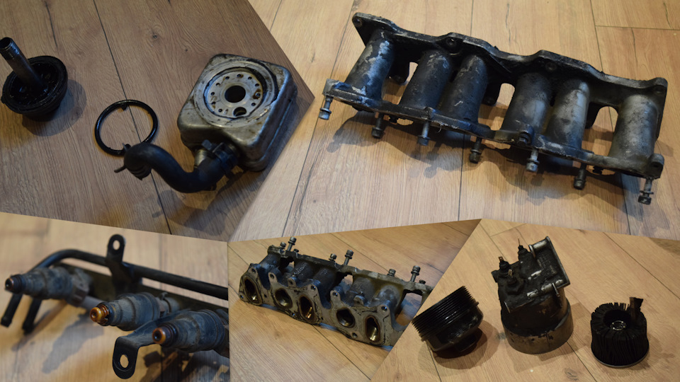 — Скидываем всю впускную систему. В моем случае пришлось как следует отмыть гофру, дроссель и впускной коллектор, т.к. внутри было нереально много масла.