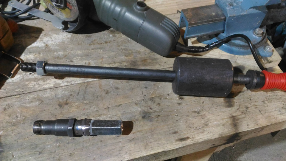 Из удлинённой гайки на 16, убитой форсунки и сварки получился отличный адаптер для съёма.