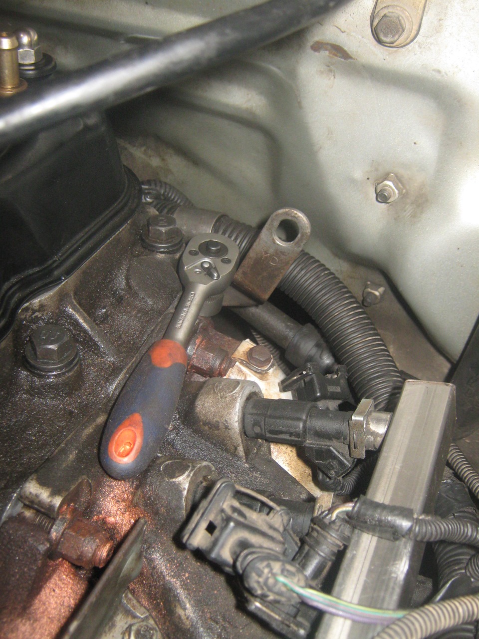 там все просто и понятно. Откручиваем впускной и выпускной коллекторы которые установлены вместе на одной прокладке, выкидываем старую ставим новую. Но меня и тут ждал гиморой. Ктото до меня меняя эту прокладку нахреначил туда кучу герметика который засох непонятными кучами и горами. Пришлось счищать весь этот герметик по принципу чистки ГБЦ. Фоток нету т.к. к этому времени я савсем уже устал.