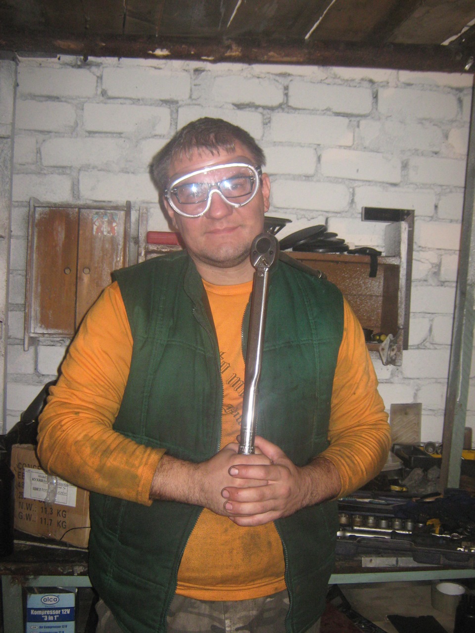 Ну и сфоткала меня счастливого но уставшего 🙂 Закрутил последнюю гайку на приёмной трубе.