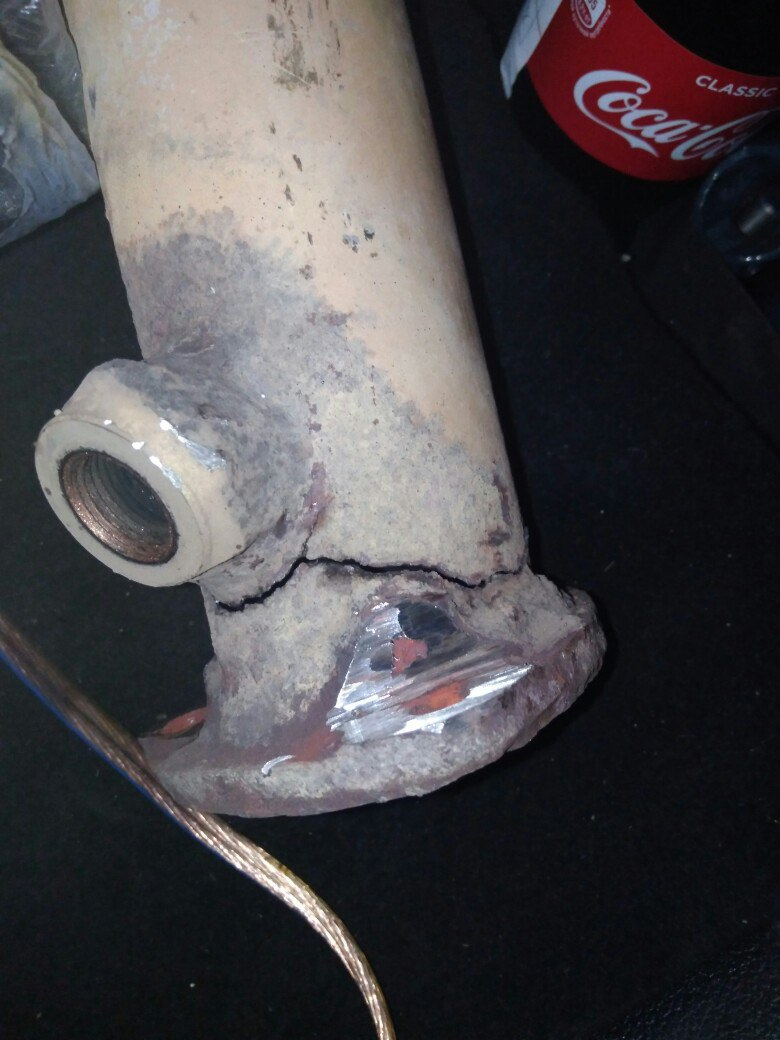 Осмотрели и нашли дырку, которая образовалась когда снимали выхлоп болгаркой…