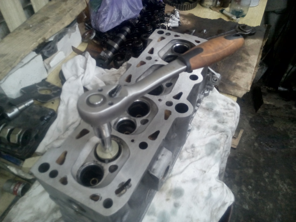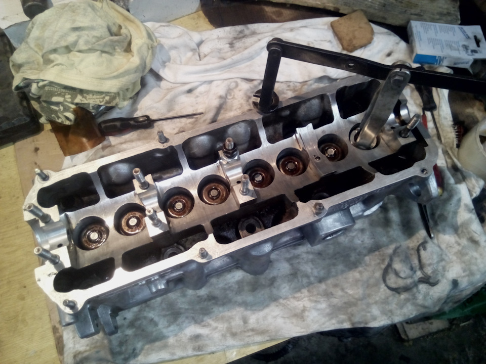 Всунул клапана, установил маслосъемные колпачки и засухарил.