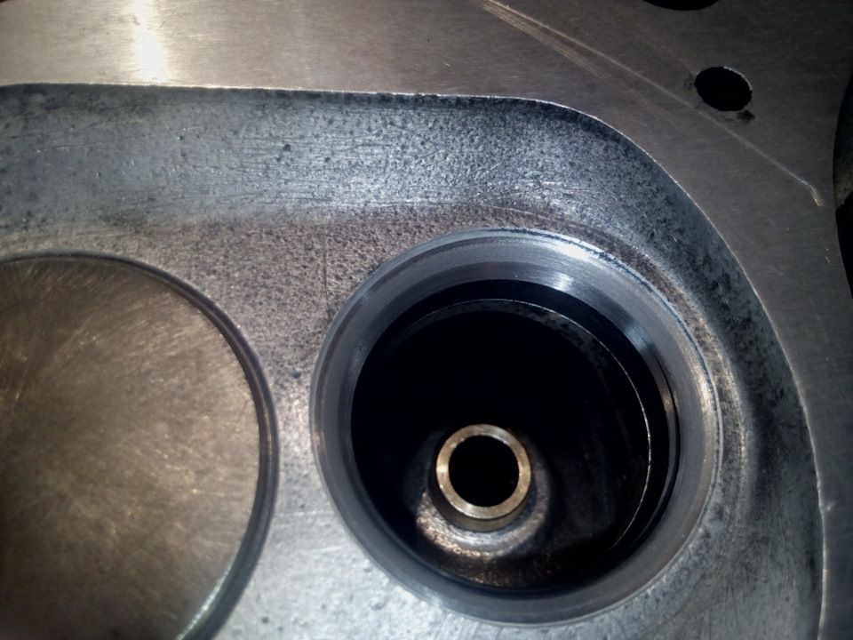 Вот такое получилось седло с фасками. Клапана проливал растворителем — все сухо.