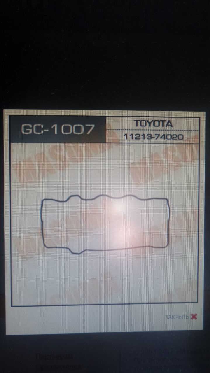 1. Прокладка клапанной крышки Masuma GC-1007 (11213-74020) — 3 000 тг. (500 руб.)