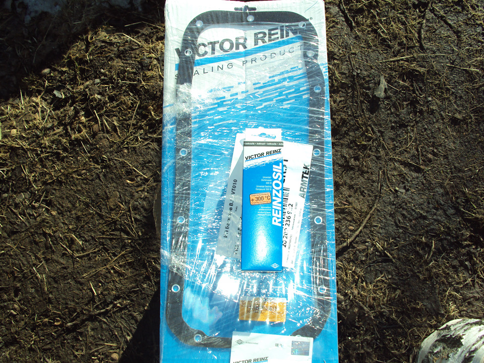Потом начал подготовку к установке. Была куплена прокладка Victor Reinz. Выбирал по родному каталогу, поэтому тут без промаха. И к ней же куплен, пожалуй, лучший герметик такой же фирмы.