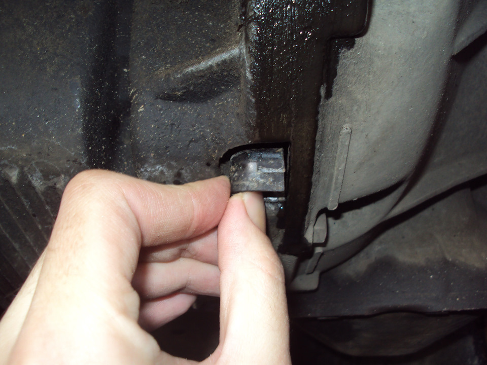 Далее необходимо открутить поддон от коробки. Там 4 болта. Два на фото (уже выкручены). Один по центру, где заглушки (на фото выше его видно). Только он откручивается со стороны коробки, это важно, потому что я его не увидел сразу, и не мог снять поддон.