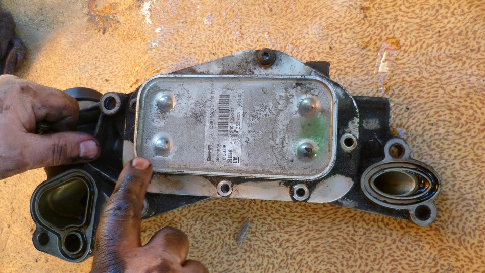 С маслом все немного сложнее, Оно тоже потечет при снятии трубки маслощупа и снятии теплообменника — заранее подложите ветошь или подставьте широкую емкость. Вытечет его немного, грамм 150-200, но этого достаточно, чтобы угадить все вокруг.