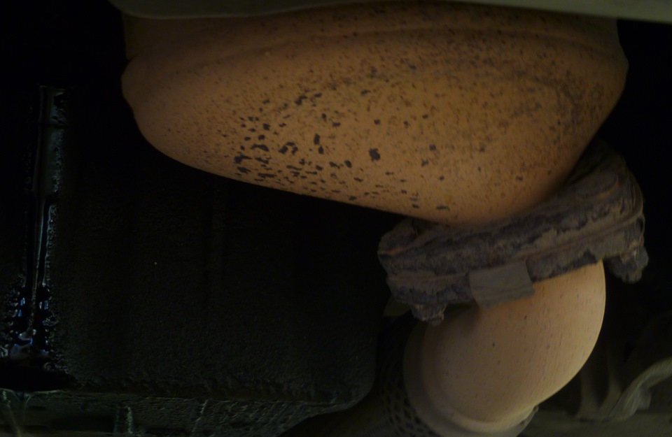 Наконец катколлектор снят. Тут же на приемную трубу одеваем пакет, чтобы грязь не летела в трубу.